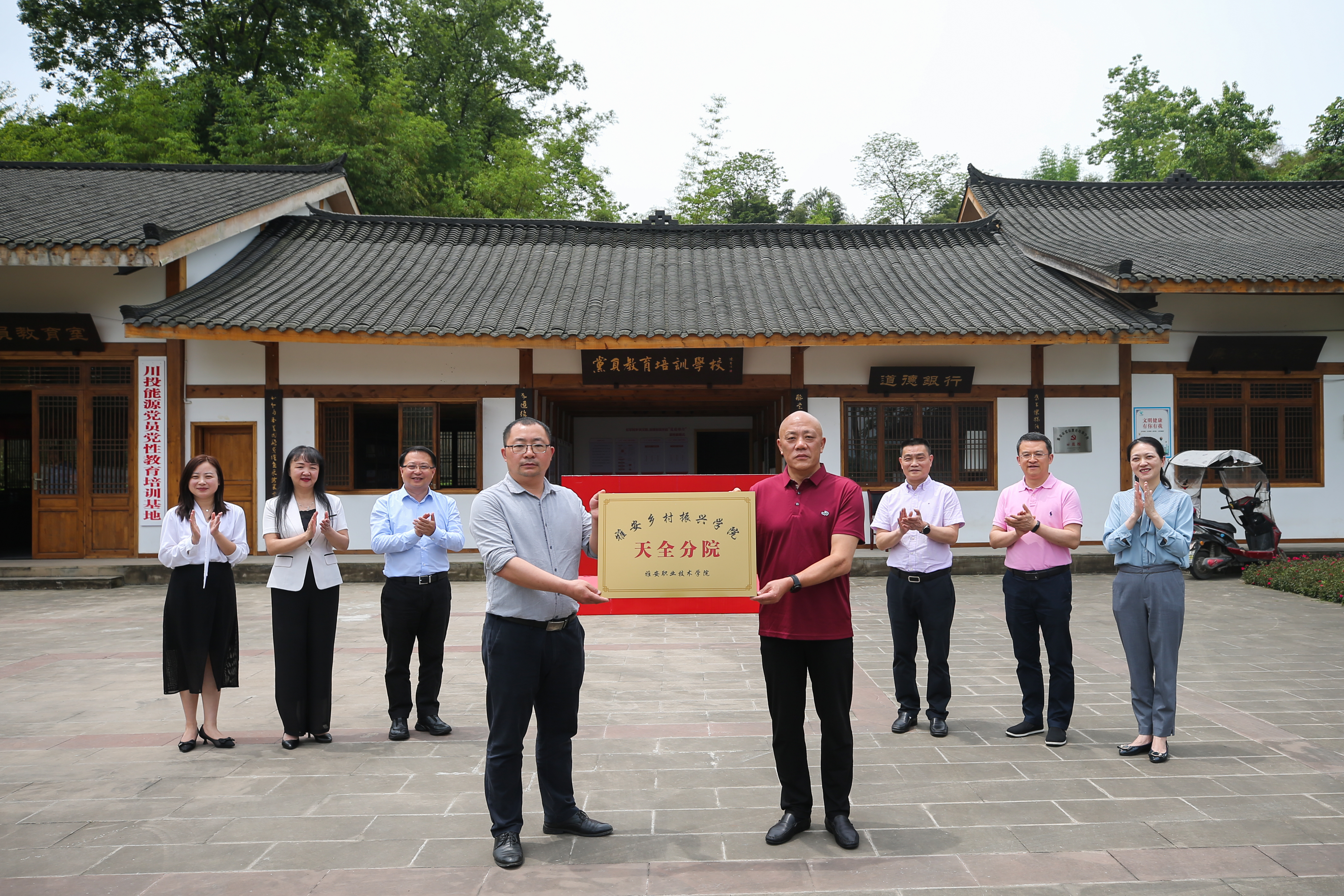 签约仪式上,我校分别与天全县人民政府、天全县职业高中签署了校县合作框架协议和中高职衔接合作协议,并为雅安乡村振兴学院天全分院授牌。