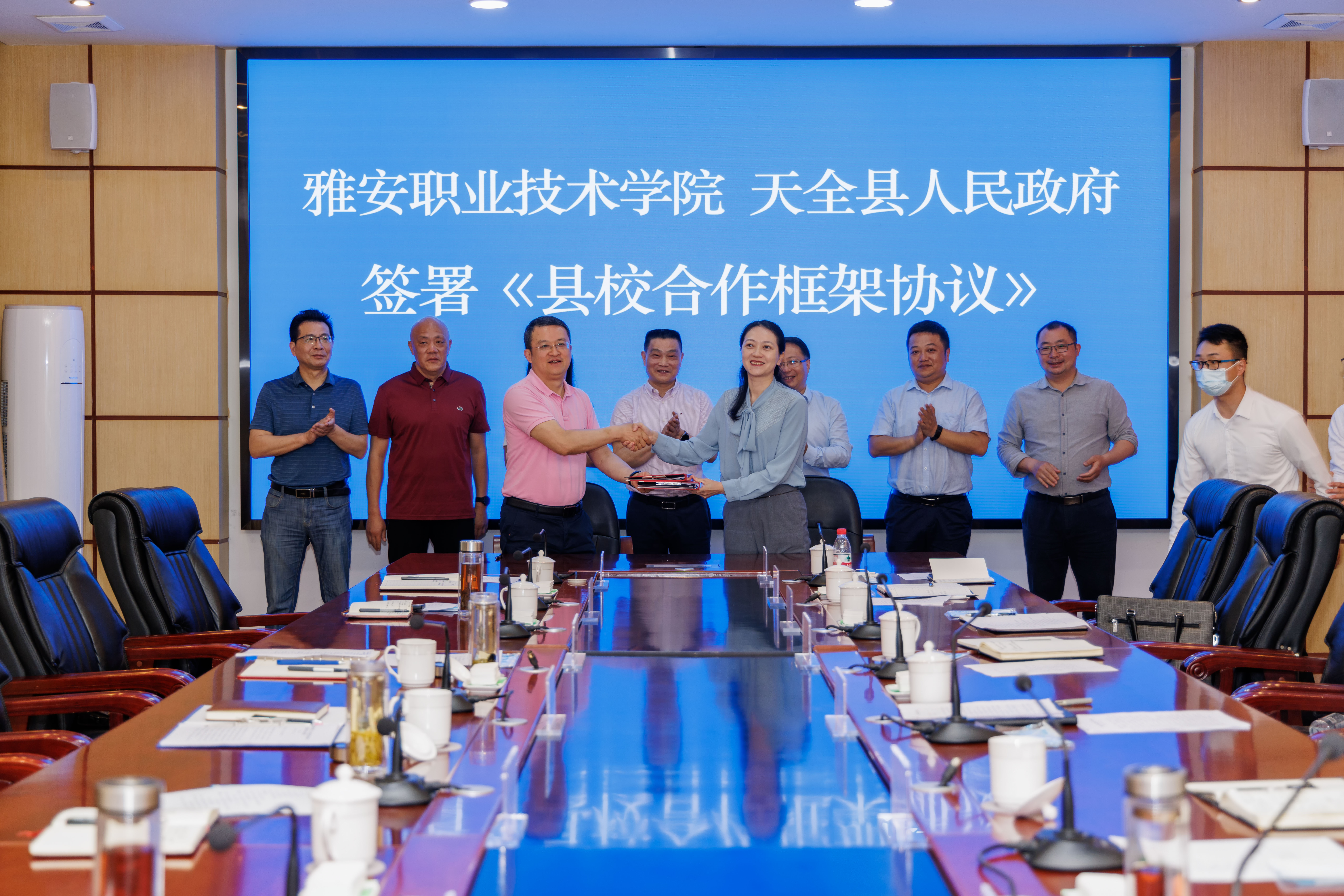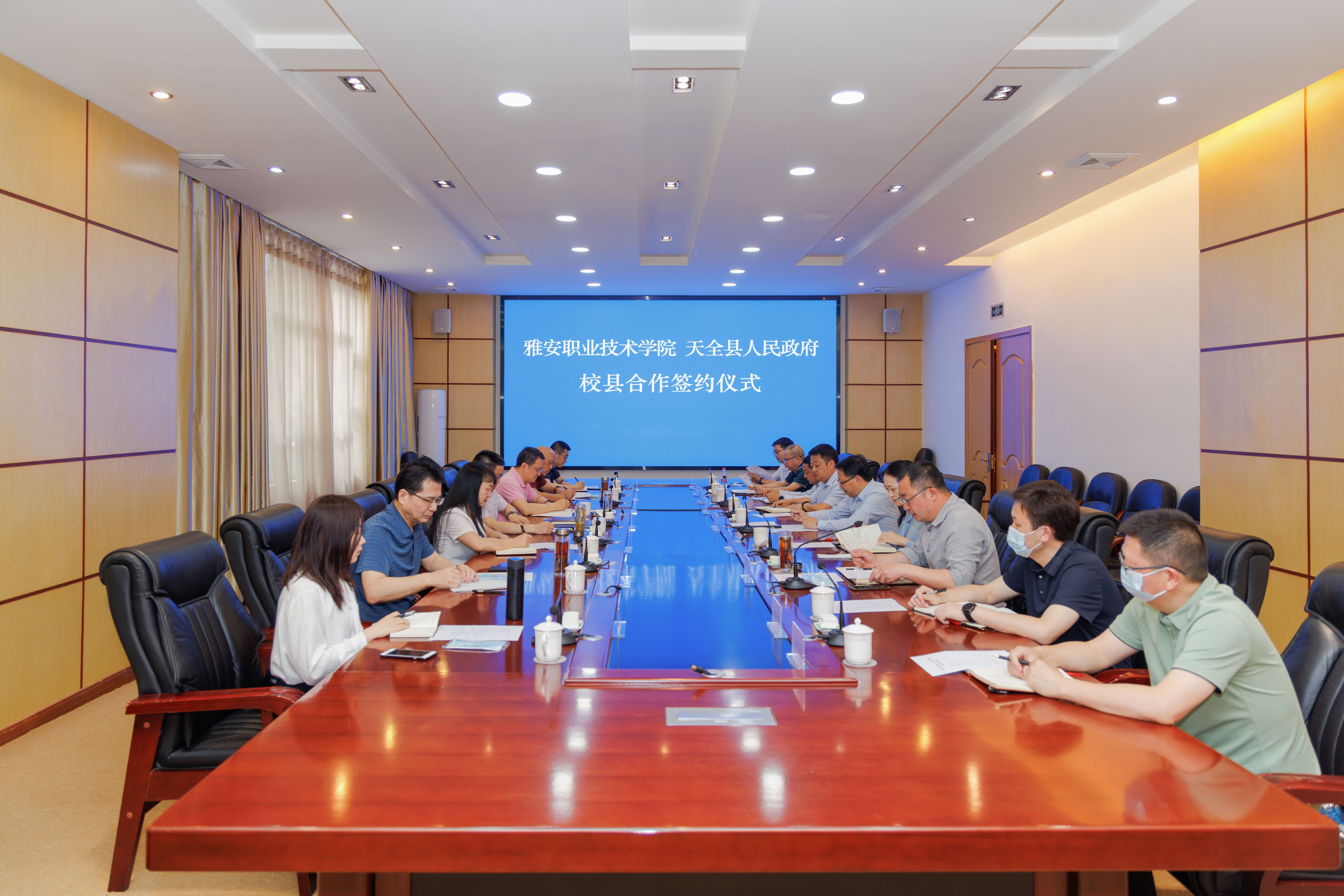 会上,学院党委副书记、校长黄诚,天全县委副书记、县长钟雪琴等领导就深化校县合作进行了深入沟通交流和研讨,提出了意见建议。表示将本着“校地共建、资源共享、优势互补、产业引领、互惠共进”的原则,着力在人才培养、技术服务、科技转化、技能培训、医疗卫生、研学旅游、电商助农、就业服务、基层治理等方面进一步加深合作,提升学院服务地方的能力,推动天全县经济社会快速发展、均衡发展。