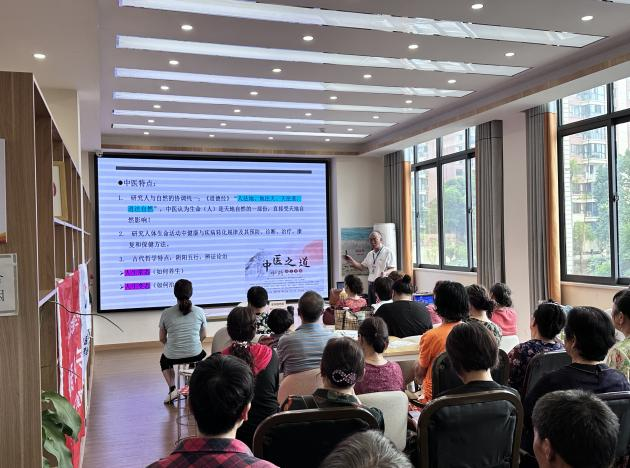 7月14日,中医与康复养生学院“乐邻新居,爱心守望”随迁老人帮扶行动实践团来到名山区德福社区为老服务中心,健康知识宣讲、中医问诊、健身气功八段锦教学和推拿艾灸服务、中药香囊制作等环节,学校中医专家李明荣围绕中医文化面向社区随迁老人开展了一堂生动有趣的健康知识讲座,学生志愿者们则分为八段锦教学组、推拿艾灸组和中药香囊制作组,在自身服务岗位上忙得不亦乐乎,用专业知识关心关爱随迁老人。